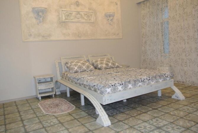 - уютная студия на двоих с большой двуспальной кроватью, мебелью и креслом. Ванная комната с душем, есть полотенца и полный набор аксессуаров;
