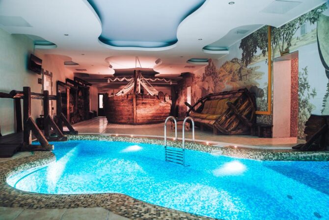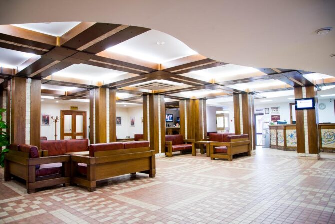 В здании есть достаточно большой крытый бассейн, вокруг которого расставлены шезлонги и лежаки. Сюда приходят купаться и взрослые, и дети. Это отличная возможность не только понежиться в теплой воде, но и подтянуть физические данные, и даже сбросить лишние килограммы. О лечение здесь многие отзываются положительно, ведь в отеле работают настоящие профессионалы своего дела с многолетним опытом.