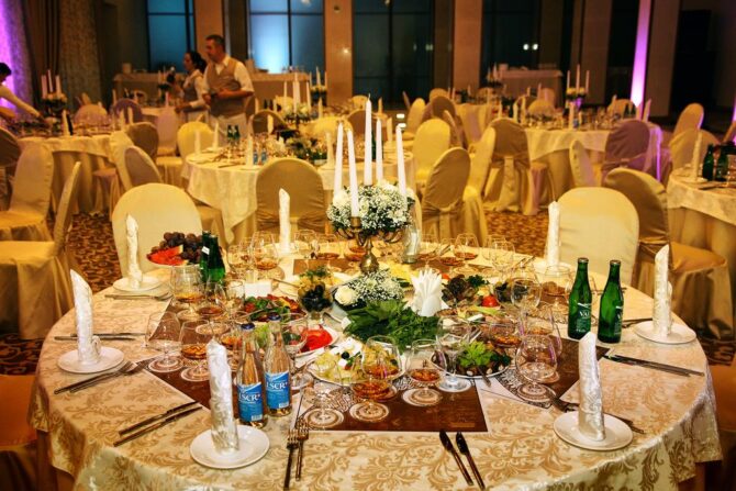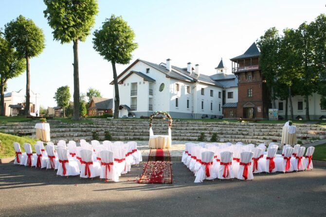 Помимо ресторанов, баров и трапезных, здесь построены и банкетные залы. В течение лета можно арендовать шатер или открытые веранды и беседки. Тут часто проводятся свадьбы с огромным количеством приглашенных гостей. На рецепции отеля вы можете заказать услуги ведущего и фотографа.