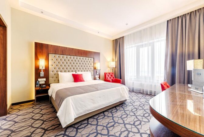 Центральное расположение в городе, современная инфраструктура и деловая направленность отеля делает его востребованным среди бизнесменов, почетных гостей города.