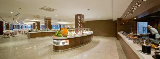 В ресторанах Раймар Хотелс 5 подают изысканные блюда кухонь всего мира. В основном здании есть отдельный шведский стол для детей, малышам официанты приносят специальные стульчики для кормления. По всей территории отеля работают бары и закусочные со вкусными алкогольными и безалкогольными напитками.