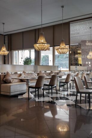 На территории гостиницы находится еще несколько ресторанов «аля-карт». Сюда можно попасть только по предварительному бронированию, поэтому постояльцы заранее заказывают столики. В заведениях играет приятная музыка, атмосфера располагает на долгие посиделки. Чтобы не чувствовать голод между основными приемами пищи, постояльцы заказывают легкие закуски и прохладительные напитки в местных барах.