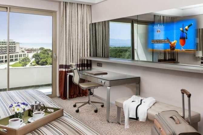Гостиничный комплекс Rixos Premium Belek 5* — заведение класса «люкс». Здесь вас ждут роскошь и комфортные условия проживания. В номерах всегда чисто и аккуратно, коридоры и вестибюли напоминают царские палаты, главный холл выглядит по-королевски. Постояльцам предлагается воспользоваться большим количеством бесплатных услуг, в числе которых использование конференц-залов, прачечная, салон красоты, спа-центр, тренажерный зал, крытый бассейн и многие другие.