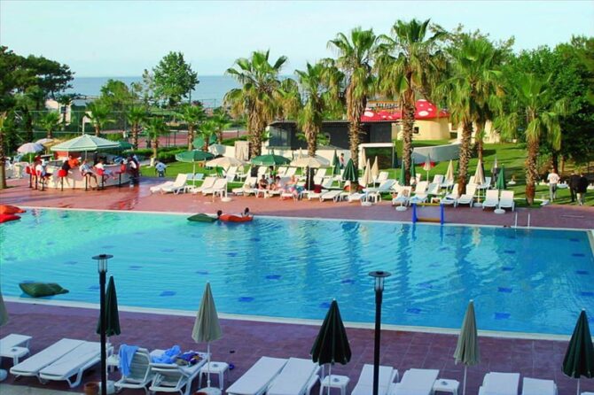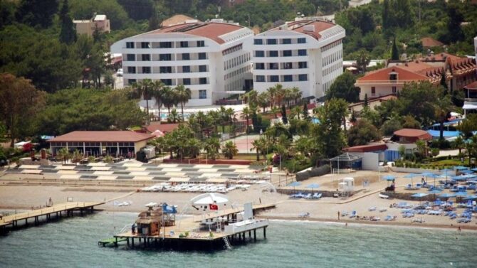 Ринг Бич Хотел расположен в поселке Бельдиби, это 55 км от аэропорта Антальи. К нему ходит трансфер, поэтому поездка проходит комфортно и без задержек. Общая площадь комплекса 12 000 м2. К Кемеру можно добраться на маршрутном такси или на авто, которое здесь предоставляют в прокат. Расстояние составляет 13 км.
