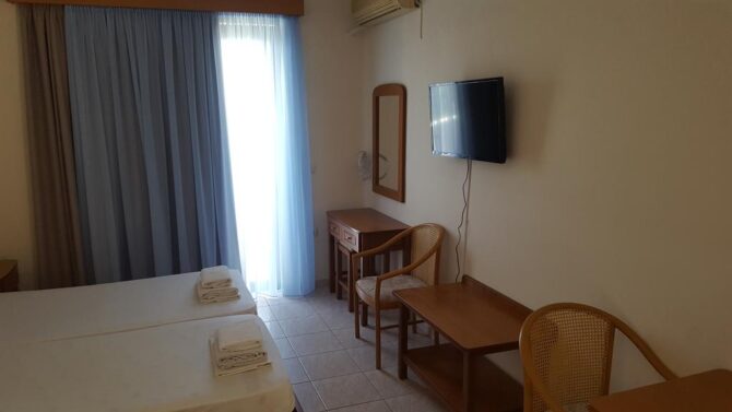 Отель включает номера, оборудованные кухней, где есть все необходимое для приготовления еды – набор посуды, сковорода, кастрюля, столовые приборы, холодильник, электрочайник. В ванной — душевой поддон со шторой, из средств ухода только мыло. Есть фен. Кондиционер платный. В номере есть балкон с набором пластиковой мебели и сушилкой. Очень чистое белье и полотенца, их меняют раз в три дня, когда делают уборку в номере. Удобные кровати, в шкафу теплые одеяла, есть телевизор с 2 -3 русскоязычными каналами. Один нюанс — ночью из-за близости леса спать при открытом балконе не дают комары и нужен фумигатор. Бесплатный wi-fi в кафе, но если номер над кафе или рядом, то можно им пользоваться, не выходя наружу. Лифта в отеле нет.