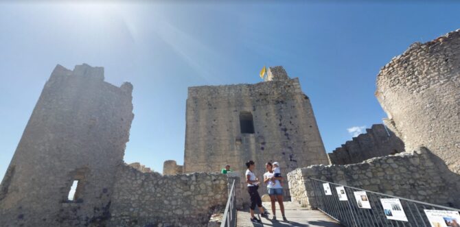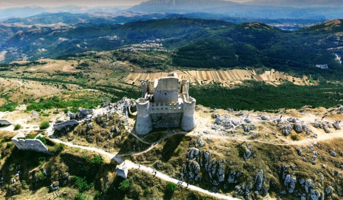 Здесь, с высоты 1460 метров, замок возвышается над одним из самых живописных пейзажей Абруццо. Виды простираются от равнины Кампо-Императоре до Гран-Сассо, от Майеллы до хребта Сиренте. Все это окружено непревзойденным покоем, оглушительной тишиной, прерываемой только сладкими звуками природы и ветра.