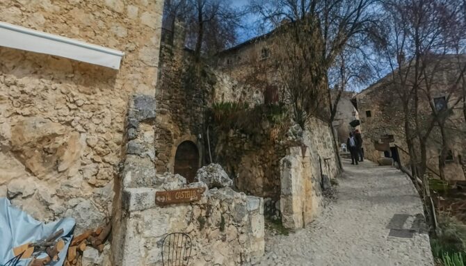 Припарковав машину возле Калашио или Рокка Калашио, чтобы добраться до замка, вам придется пройти через древнюю деревню. Следуйте по дороге в гору, гуляя среди старых домов, которые теперь превратились в большой отель. Прогулка длится около 20 минут, она приятна, совсем не утомительна и действительно подходит для всех.