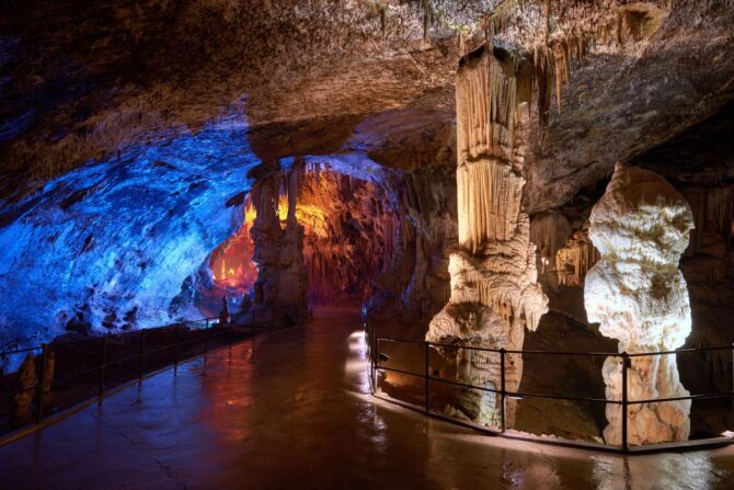 Карстовая пещера, пользующаяся у туристических групп большой популярностью, ее можно причислять к одним из наиболее обжитых посетителями и людьми паломнических мест. Она имеет самую наибольшую длину открытого для посетителей пространства – 5, 30 км.было проведено электричество и находится действующая железная дорога. Это совсем малая часть пещеры, сама карстовая система в этом месте составляет по протяженности более двадцати километров.