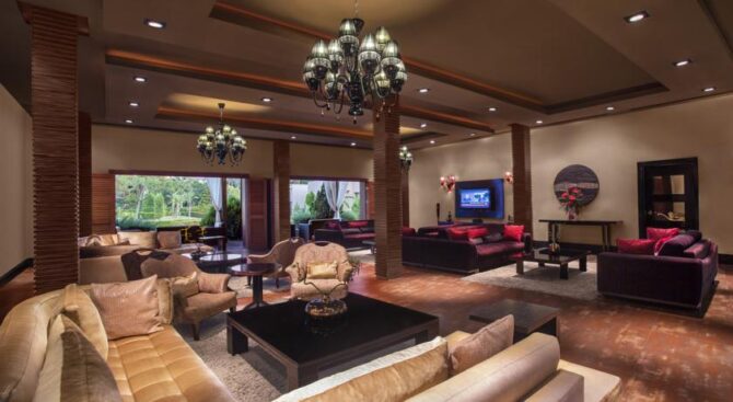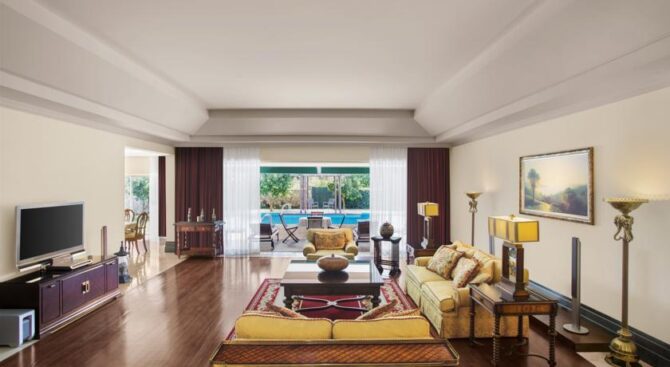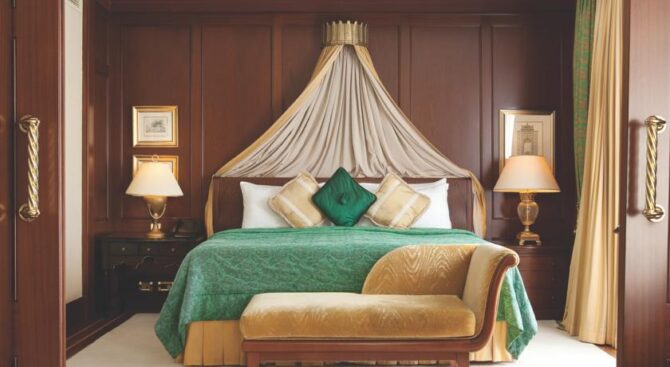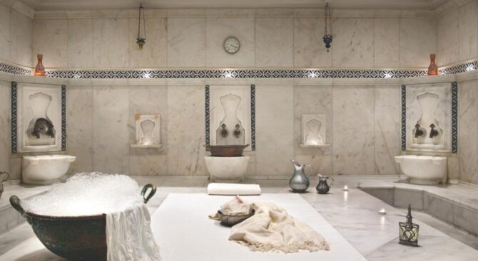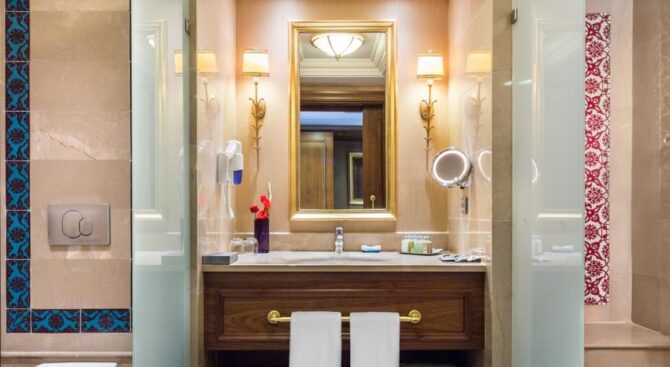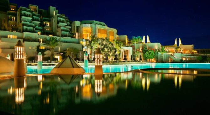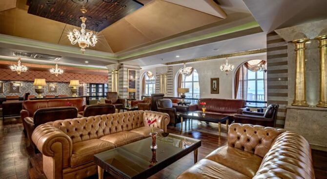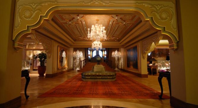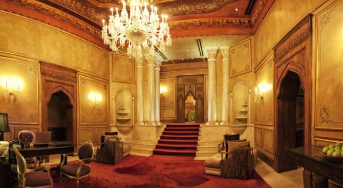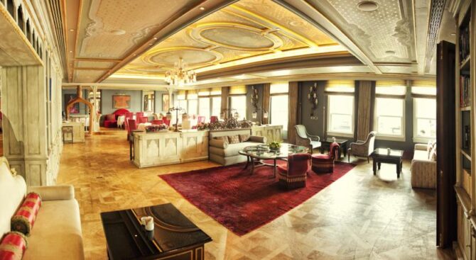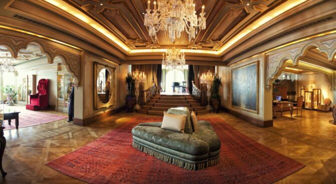 Отель занимает здание османского дворца, который был построен в 19 веке. Его роскошные интерьеры, достойные пребывания шейхов, позволяют чувствовать себя по-особенному, находясь на отдыхе. В роскошных холлах и вестибюлях расставлена мебель ручной работы, стены украшены росписью, а высокие потолки – шикарными золотыми люстрами.