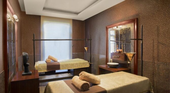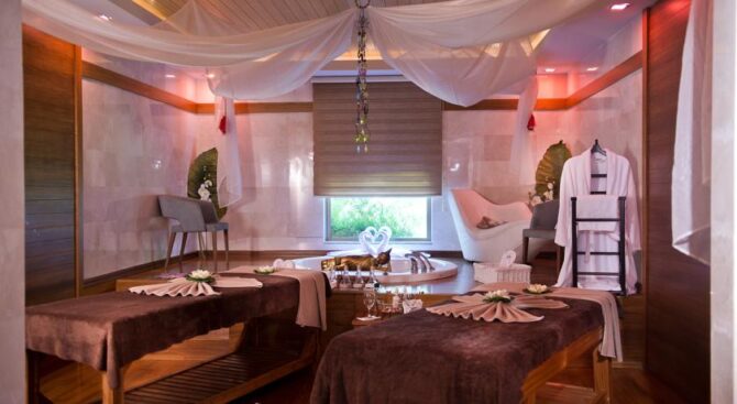 Элегантные беседки, расположенные рядом с бассейнами и на пляже, позволяют уединиться, скрыться от палящего солнца, а также заказать косметические и массажные услуги. Заняться оздоровлением или просто насладиться тишиной, покоем и гармонией можно в SPA-центре, где к услугами посетителей большой крытый бассейн, зоны отдыха и кабинки для проведения процедур.