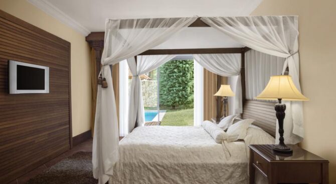 Во всех номерах отеля есть удобная кровать и гостиная зона, а также меблированная терраса, с которой можно любоваться видом Таврских гор. Расположившись в удобных зонах отдыха в саду, можно заказать прохладительные и алкогольные напитки, а также закуски и мороженое.