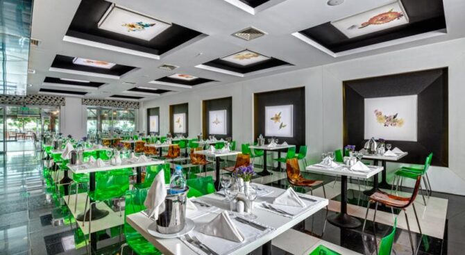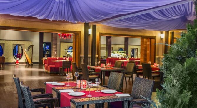 Отель обслуживает гостей по системе «все включено». В 9 ресторанах, некоторые из которых принимают только взрослых, готовят оригинальные блюда местной кухни, а также привычную для туристов европейскую, японскую и итальянскую еду. На территории отеля работает несколько баров, в которых можно не только заказать напитки и закуски, но и потанцевать или послушать «живую» джазовую музыку.