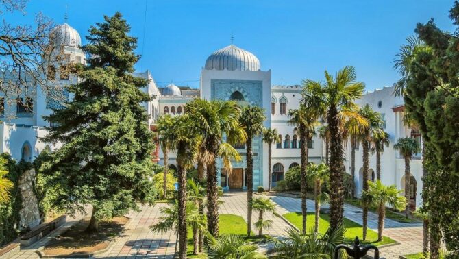 Приехать на отдых в Крым и остановиться на проживание в одной из архитектурных достопримечательностей предлагает санаторий «Дюльбер» в Кореизе. Поселок находится в 10 км от Ялты в живописной долине между мысом Ай-Тодор и Алупкой. Сам санаторий расположен в бывшем дворце «Дюльбер», который в 19-м веке построил архитектор Краснов для великого князя Петра Николаевича Романова. В советское время территорию дополнили еще двумя жилыми корпусами. Сегодня отель является одним из самых востребованных мест отдыха в Кореизе благодаря своему месту расположения, комфортабельным условиям проживания и лечения.