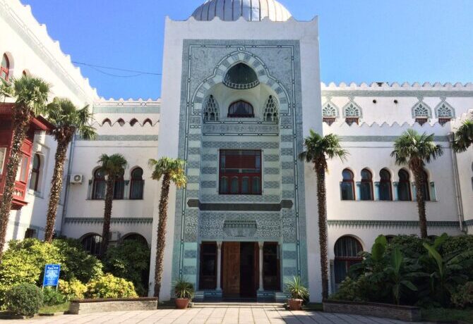 Жилые корпуса расположены на территории паркового комплекса, чьи естественные границы с юга омываются Черным морем, на западе водами горной реки Узень-Чешме, на востоке – рекой Загмата, а на севере выходят к Алупкинскому шоссе. Парк разбит на нескольких террасах, которые ведут от главного въезда до самого берега моря. Главное здание в неомавританском стиле строилось в течение двух лет, с 1895 по 1897 годы. Сразу после февральской революции сюда переехали некоторые члены царской семьи. Они укрывались здесь вплоть до 1919 года, пока не эмигрировали в Европу.
