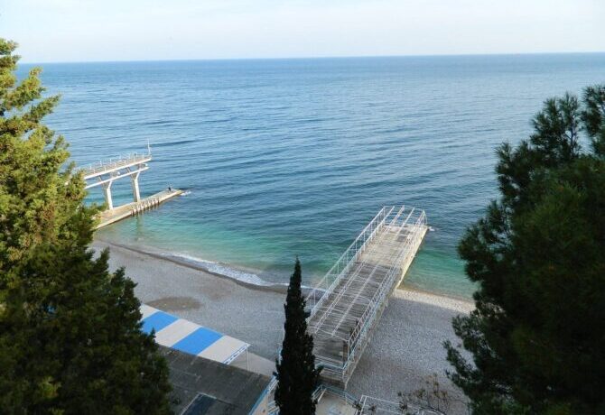 Пляж находится буквально в двух шагах от жилых корпусов. К нему ведут широкие аллеи, а также несколько лестниц для желающих спуститься к воде как можно быстрее. Покрытие – галька. Имеются навесы, шезлонги, кабинки для переодевания, пресный душ, туалет. На пляже работают спасательная служба, медицинский пункт, бар. За дополнительную плату можно позаниматься водно-моторными видами спорта и воспользоваться услугами дайвинг-клуба.