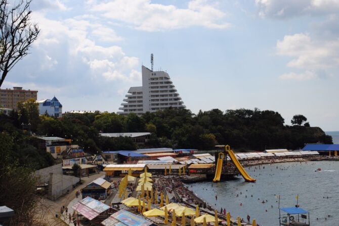 Коме того, санаторий обладает частным пляжем галечного типа. Расстояние до него занимает всего 10 метров. Можно спуститься на лифте или пройтись по ступенькам, что станет неплохой разминкой. Пляж имеет протяженность более 250 метров. Площадь пляжа внушительная. Есть отдельная зона для детей. На пляже есть все необходимое для комфортного отдыха: пластиковые лежаки, навесы, зонты. Для того, чтобы в полной мере расслабится, мы предлагаем отдыхающим воспользоваться кабинетом гидромассажа. Также предлагаем ручной массаж. На территории пляжа вы также сможете найти различные небольшие магазинчики и кафе, что очень удобно. Можно посидеть с друзьями, наслаждаясь летним морским пейзажем. Кроме того, кафе работает допоздна, что позволит каждому отдыхающему полюбоваться закатом, сделать фото на память.