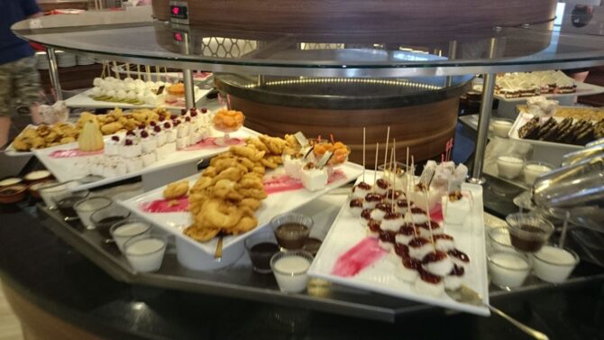 Помимо основного ресторана, здесь есть несколько заведений «аля-карт», в которых предлагается мексиканское, азиатское, турецкое и итальянское меню. Подкрепиться между основными приемами пищи можно в различных барах и закусочных.