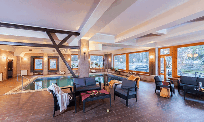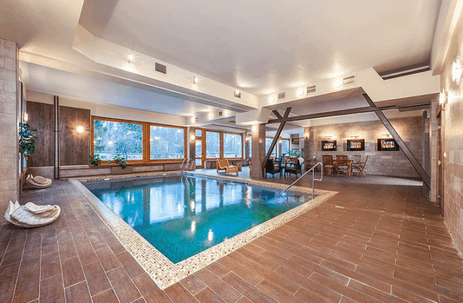 Для гостей шале-отеля «Таежные дачи», которые не мыслят своего отдыха на природе без водных процедур, плавания и купания, оборудованы два бассейна: открытый и закрытый. Стоимость посещения зависит от количества человек и времени, в течение которого гости отдыхают, развлекаясь в воде. Актуальные цены в 2021 г. – от 800 р. Открытый бассейн работает в летнее время с 10:00 до 18:00, закрытый в течение всего года – круглосуточно.