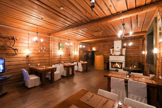 Шале-отель «Таежные дачи» предлагает гостям, в зависимости от своих желаний и целей, выбрать определенный зал или площадку для питания, романтического ужина, празднования дня рождения или другого важного события:
