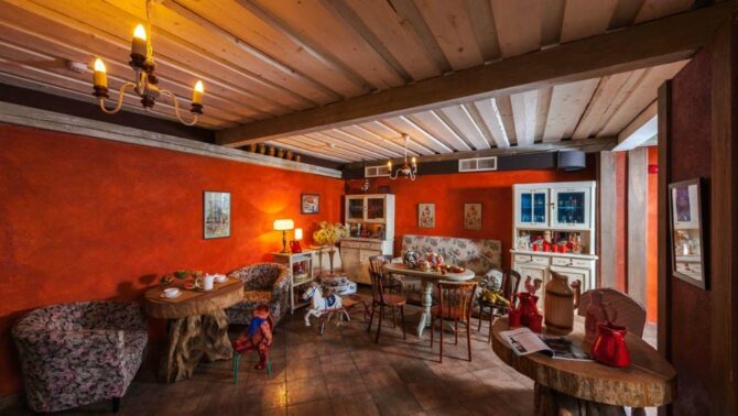 Для ценителей прикладного искусства, старинного зодчества и русской живописи также найдутся занятия внутри дачного комплекса. На территории отеля «Таежные дачи» расположено несколько небольших шале-музеев: