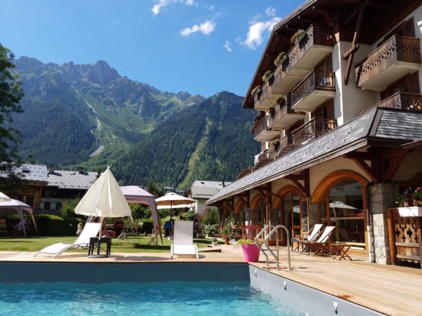 Трёхзвёздочный отель вы найдете у подножия одной из гор в Шамони, неподалеку от центра города и железнодорожного вокзала, так как в большинство отелей региона гости могут приехать на поезде. Вы сможете пешком дойти в центр Шамони, посетить местные рестораны и достопримечательности. Гости могут выбрать размещение в просторных семейных номерах и люксах с видом на горы. На всей территории отеля доступен быстрый интернет, комнаты оборудованы современной техникой для комфорта и удобства гостей. Зимой приятно согреться в сауне и турецком хаммаме, посетить оздоровительный центр.