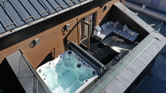 Для любителей лыжного спорта очень удобно расположены подъёмники и места хранения снаряжения, все в шаговой доступности. Также очень популярна открытая джакузи и сауна, температура воды в которой комфортна в любое время года и дарит незабываемое расслабление. Принимайте ванну и наслаждайтесь видом Монблана.