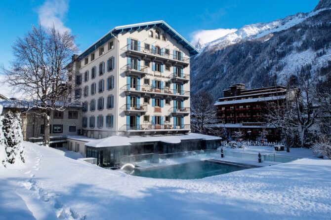 Пятизвездочный отель в центре Шамони, известный миру уже более 100 лет. Построенный в начале прошлого века, курорт является роскошным островком в горах. Это семейный проект с историей, то место, где дарят уют, высокий уровень сервиса и высокой кухни. Комплекс представлен как строгими и стильными в отделке апартаментами, так и уютными шале в деревенском стиле. Все типы номеров предназначены для комфортного размещения как отельны пар, так и больших семей с детьми. Шамони Монблан — это роскошный курорт мирового альпинизма, гости прибывают сюда активно отдохнуть и расслабиться, созерцая прекрасные горные вершины из своих уютных номеров. К услугам гостей два панорамных бассейна, спа — центр премиум класса, рестораны с интересной местной кухней.