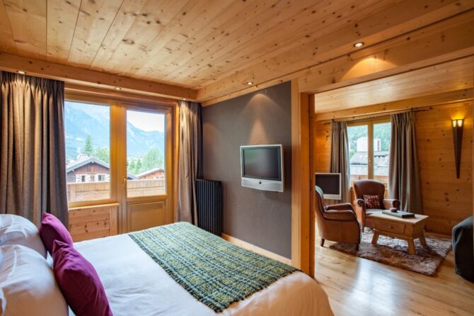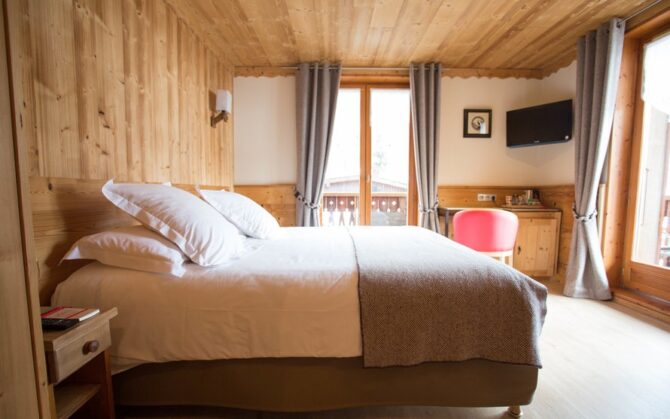 Уютный отель в стиле шале в прекрасной локацией на Монблане. Выбор из комфортабельных номеров, отделанных деревом, с аутентичной мебелью и камином очень разнообразен, уникально лишь то, что отовсюду открываются прекрасные виды на горы. Девизом хозяина гостиницы является идея, что его бизнес — это естественный образ жизни. Отель славится особенным обслуживанием и индивидуальным подходом к каждому гостю. Номерной фонд состоит из 22 семейных комнат, пяти люксов в шале. Интерьеры везде организованы очень стильно и со вкусом, в отделке использованы только натуральные материалы. Шале имеют выход в собственный сад. В стоимость проживания включен обильный завтрак, закуски в течение дня.