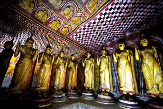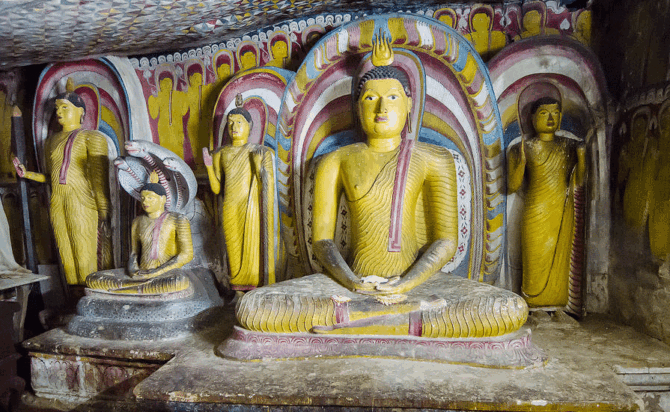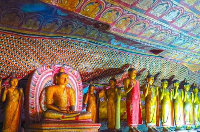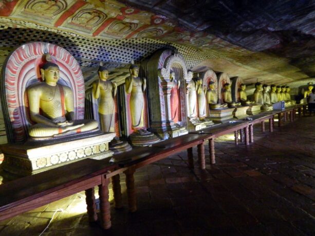 Одно из наиболее интересных священных мест Шри-Ланки находится в 19 км к юго-западу от Сигирии. В городе Дамбулла расположен знаменитый пещерный храм, возведенный в I столетии до н. э. по инициативе Валагамба – ланкийского короля, спасавшегося в скалах от преследований врагов. В течение последующих веков другие монархи продолжали строительство сакрального сооружения.