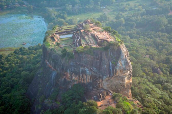 Среди многочисленных исторических объектов острова выделяется уникальный археологический и природный памятник – Сигирия. Название, хорошо известное зарубежным туристам, приезжающим на Шри-Ланку, можно перевести с сингальского как «Львиная скала». Высота плато, возвышающегося над живописной равниной, – 180 м (над поверхностью моря – 370 м, по другим данным – 350 м).