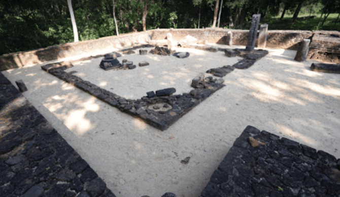 Сейчас перед посетителями предстают остатки фундамента культового сооружения. Здесь можно остановиться на несколько минут, чтобы сделать снимки и представить, как величественно выглядел зал в далеком прошлом. Путешественники приходят к этому месту, чтобы отдохнуть в тени высоких тропических деревьев.