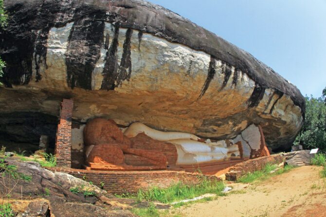 - Гал Вихарая – хорошо сохранившийся храм в скале; здесь можно увидеть четыре статуи Будды, в том числе стоящая фигура божества (высота – 7 м) и лежащая (длина – 14 м);