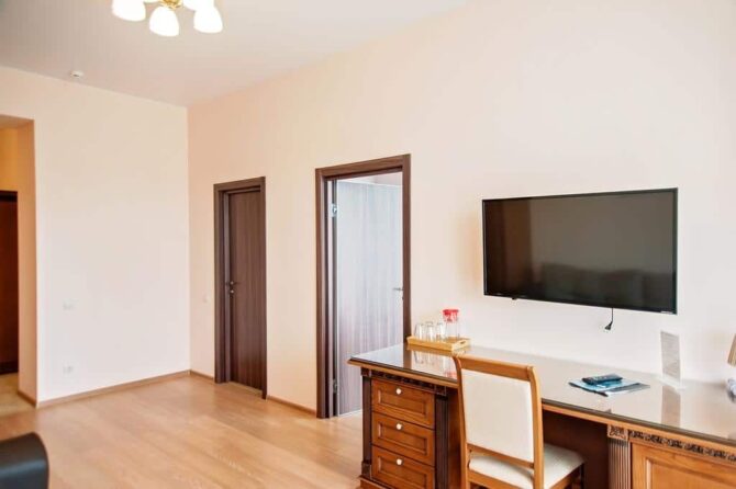 Андрей, Магадан: «Студия была оснащена всем необходимым, техника работала исправно. Особенно порадовало наличие хорошего холодильника и сейфа, куда можно сложить важные документы и не волноваться по поводу их сохранности. Телевизор в номере также был, но мне он совсем не пригодился – много времени ушло на прогулки по лесу и посещение бассейна и фитнес-зоны».