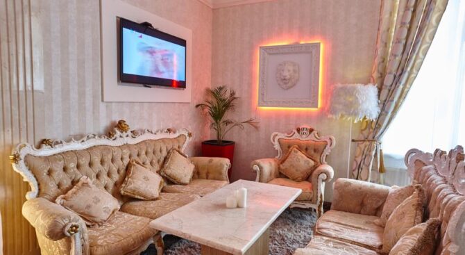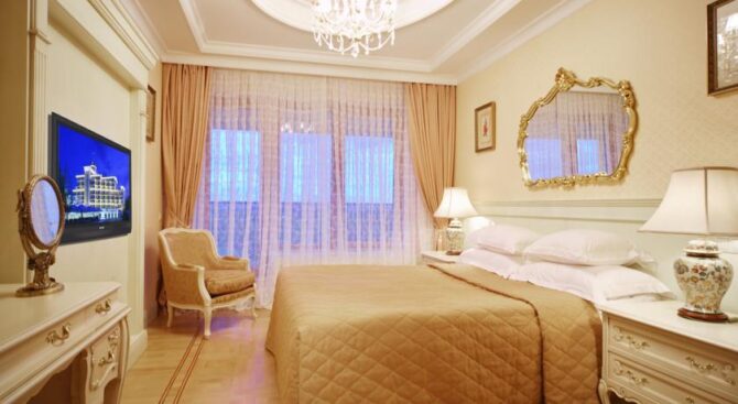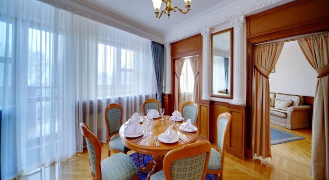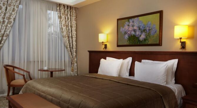 Комфортабельный отель Набат Палас Домодедово класса 5 звезд находится в 20 км от столицы, в деревне Воеводино. Постояльцам понравится роскошный декор номеров, которые оформлены изысканными материалами и люксовой итальянской мебелью.