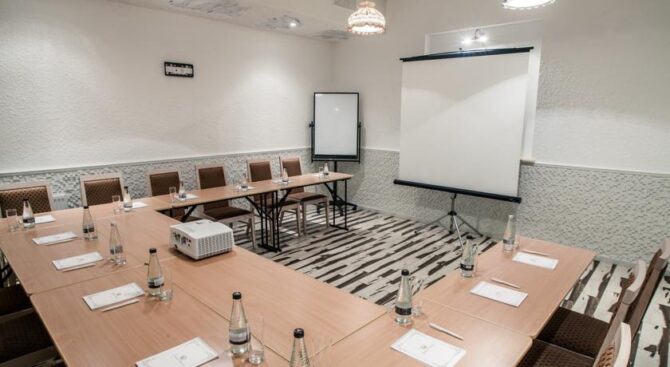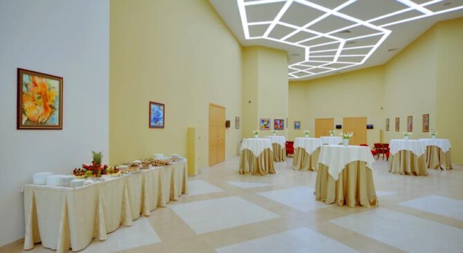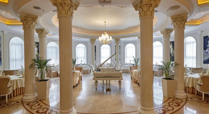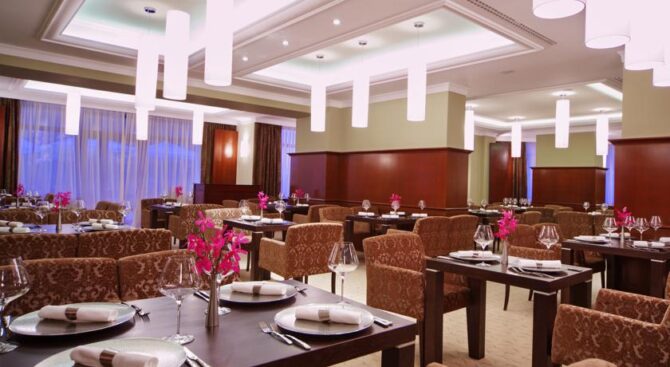 Ресторан отеля приятно удивит гостей блюдами, созданными по традиционным арабским, европейским и кавказским рецептам. К услугам тех, кто хочет отдохнуть – бар с напитками на любой вкус. Постояльцы могут расслабиться в турецкой бане или сауне, а также посетить сеанс массажа или искупаться в бассейне.