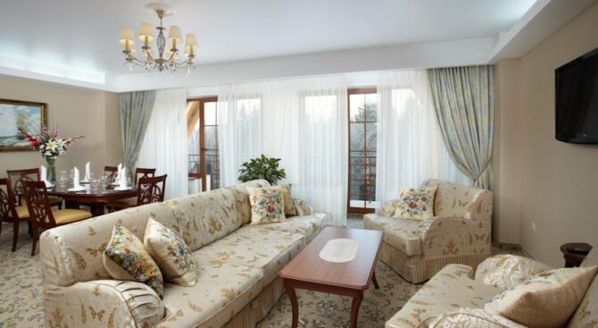Кроме того, постояльцы загородного отеля могут посетить бильярдную, поиграть в теннис или боулинг, а также воспользоваться крытым бассейном, который располагается в главном здании заведения. К их услугам массажный кабинет и целебные грязевые ванны. Каждый из номеров «Величъ Country Club» оформлен в современном стиле. Он оснащен ванной комнатой и кондиционером.