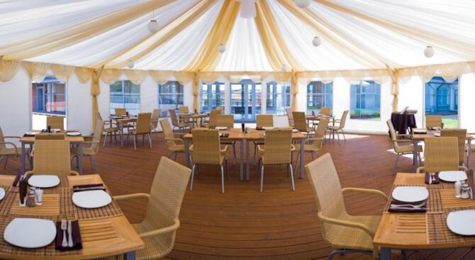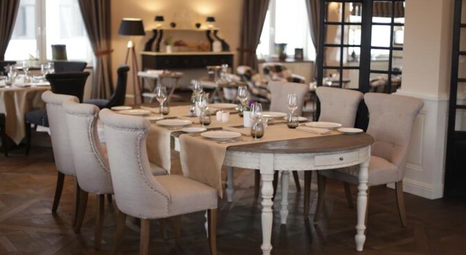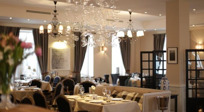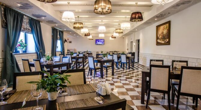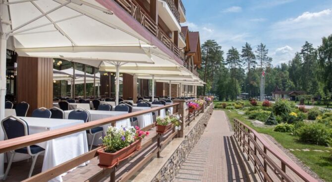 Ресторан загородного отеля ориентирован на ценителей европейской и русской кухни. Также имеется бар с изысканными коктейлями. Если планируется семейный отдых, персонал заведения предоставит специальные номера. Тем, кто не выносит запах сигаретного дыма придутся по вкусу номера для некурящих.