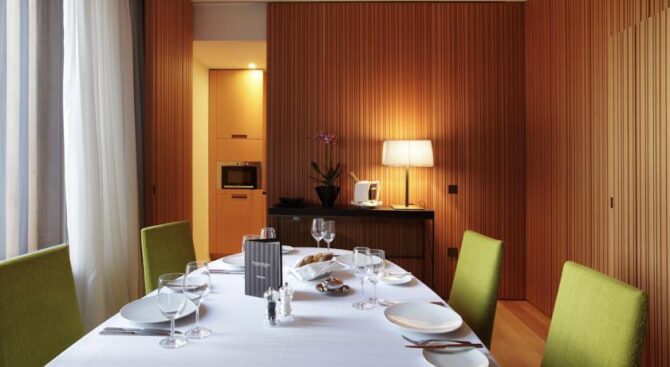 В каждой ванной комнате отеля находятся косметические и туалетные принадлежности люксового бренда Chenot, за которые постояльцу не нужно ничего платить. Цена на них уже изначально включена в стоимость проживания. В отеле находится уютный ресторан под руководством Анатолия Комма, специализирующийся на блюдах европейской и русской кухонь.