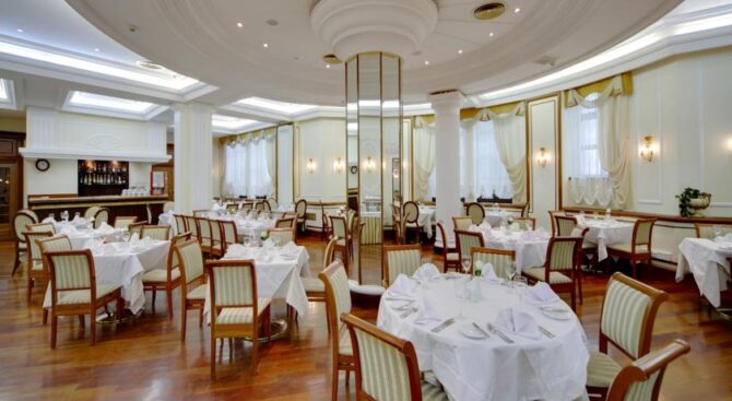 Рестораны Купеческий и Дворянский порадуют гостей отеля изысканными блюдами европейской и русской кухни. Любителям весело провести время и отведать вкусных шашлыков с пивом, распахнул свои двери бар Beer Assembly. Порадовать гостей свежей выпечкой готово кафе-кондитерская.