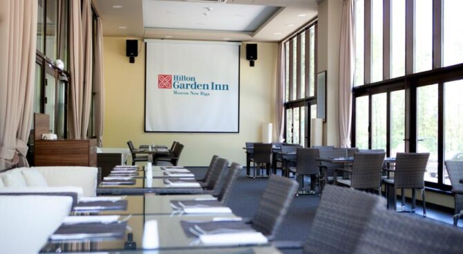 Для тех, кто любит вкусно поесть, на территории отеля работает ресторан Garden Grill. При желании, постоялец может заказать завтрак из него прямо в номер. Кроме того, в Hilton Garden Inn Moscow располагается снек-бар. К услугам постояльцев центр с оздоравливающими процедурами и СПА, который порадует своими расслабляющими процедурами.