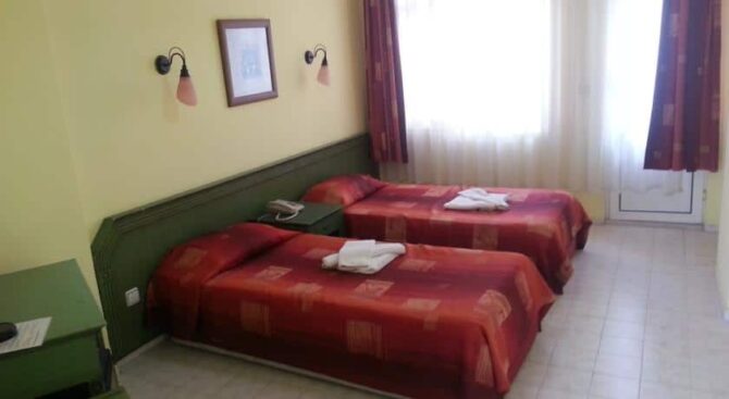 - В номерах установлены комфортные огромные двуспальные кровати с ортопедическими матрасами. Щелкая пультом телевизора, можно найти два русскоязычных канала.