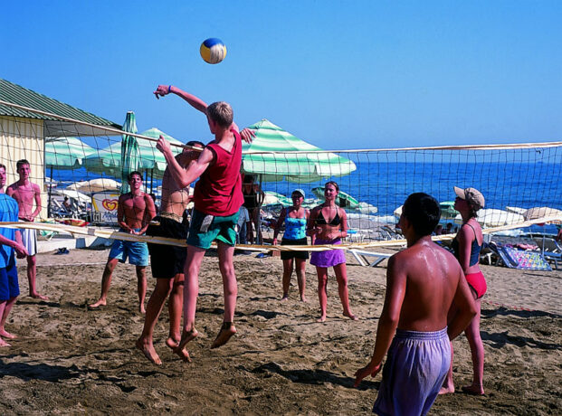 Теперь о самой зоне отдыха. Вход в море достаточно комфортный, поэтому вы можете купаться без опаски в сопровождении с маленькими детьми. Но вам необходимо будет позаботиться о специальной обуви, поскольку покрытие здесь песчано-галечное. Но всем постояльцам доступны платные и бесплатные развлечения, например, игра в волейбол, мини-футбол и баскетбол, катание на катере и яхте, каноэ, водных лыжах и катамаранах.