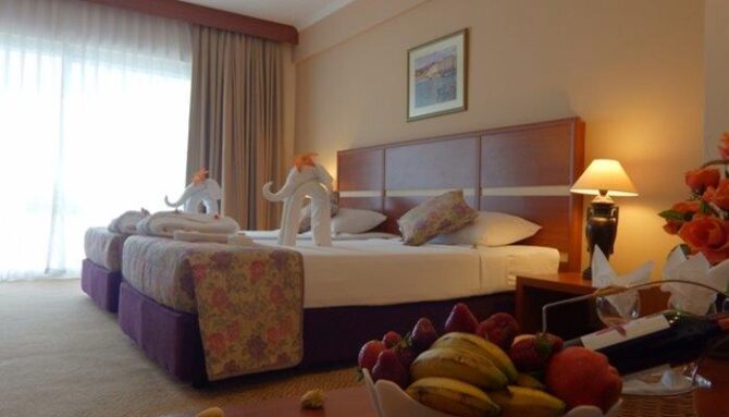 Что касается локации, то некоторых туристов может смутить удаленность от международного аэропорта. Отель находится в 12 километрах от Алании, а вот для возвращения домой вам придется преодолеть расстояние в 115 километров до самолета, на котором вы отправитесь домой.