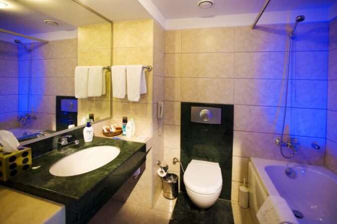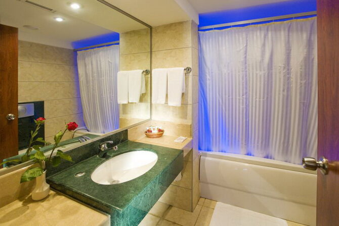 - 211 стандартных номеров. Они оснащены высокотехнологичным оборудованием, спутниковым телевидением, телефоном с выходом на международную связь, профессиональной системой кондиционирования, мини-баром и сейфами. В ванных комнатах все бесплатно – от шампуня и мыла до фена и халата. Метраж – 29 квадратных метров.