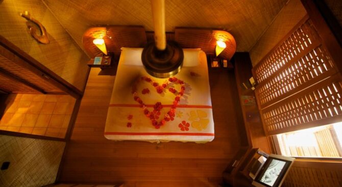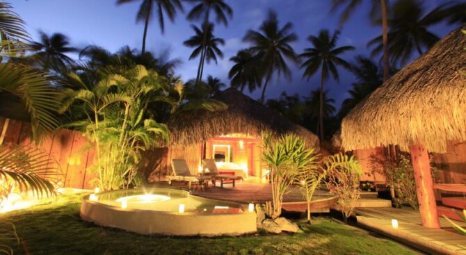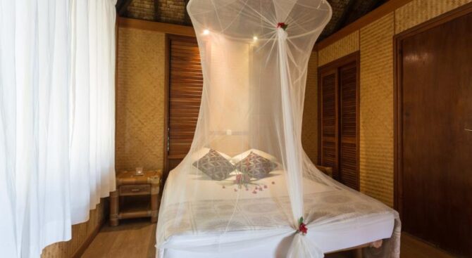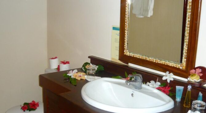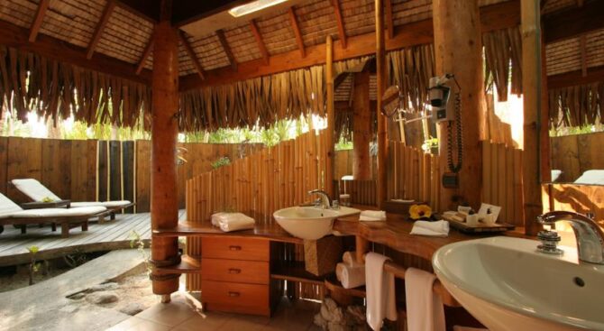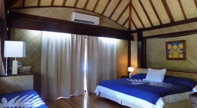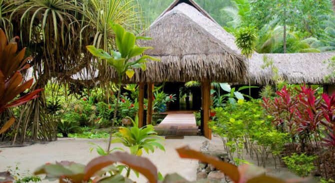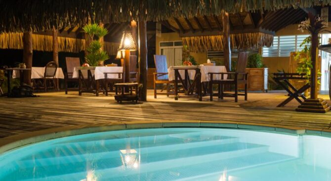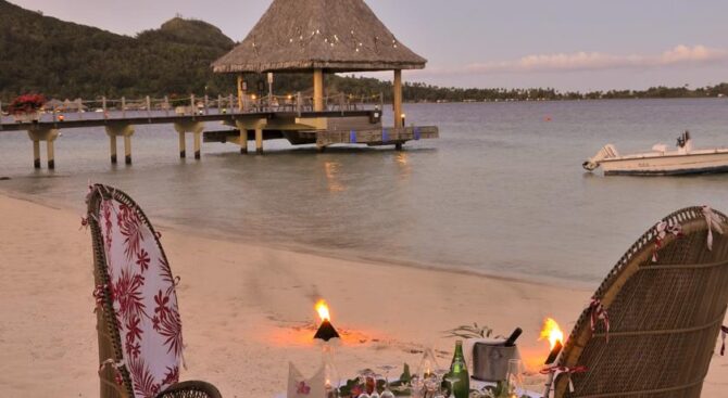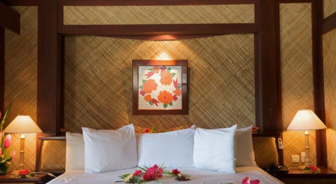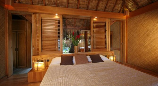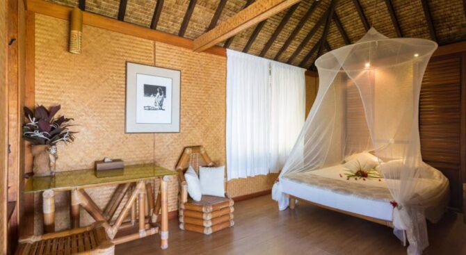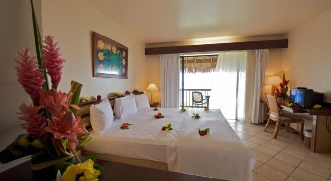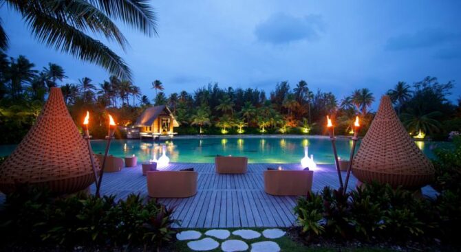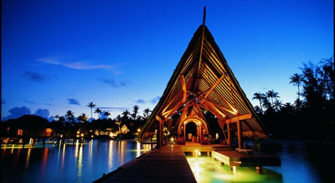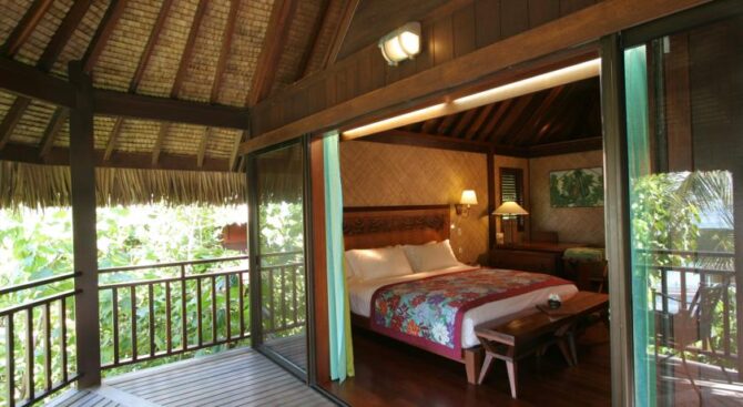 Этот отель предлагает своим гостям заселиться в роскошные бунгало, построенные прямо над поверхностью воды, или в прибрежные виллы, из которых открывается великолепный вид на гору Отеману. К услугам туристов – тренажеры фитнес-клуба и расслабляющие процедуры в спа-салоне, который находится на побережье.