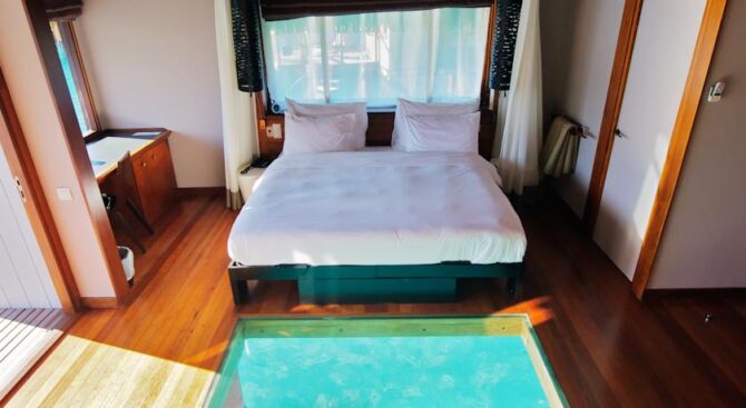 И в бунгало, и в номерах Maitai Polynesia Bora-Bora имеются небольшой бар с напитками, большой современный телевизор и кондиционер. Изюминкой бунгало этого отеля на Бора-Бора являются столы, изготовленные из прочного стекла, через которые постояльцы могут любоваться на экзотических рыб, живущих в океане.