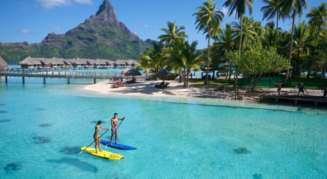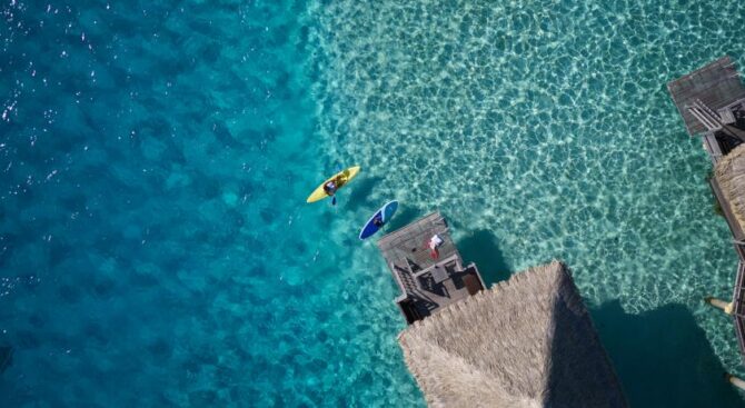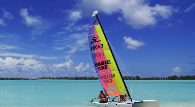 Также постояльцам отеля Four Seasons Resort Bora-Bora предлагается отправиться на прогулку катамараном, с которого можно посмотреть на акул, а также заняться виндсерфингом или каякингом.