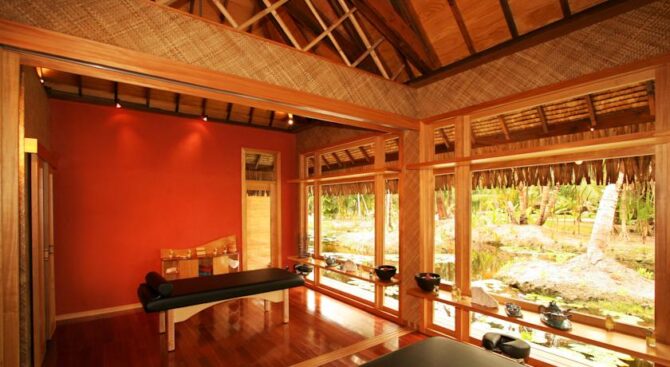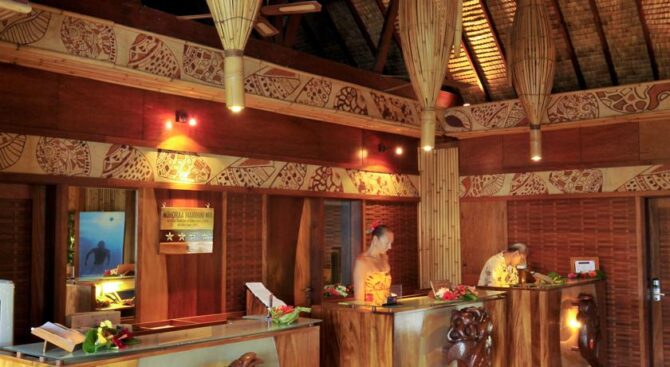 В этом курортном комплексе специально создана уютная атмосфера островов Полинезии. А лагуна с прозрачной водой открывает посетителям чудесный вид на кораллы и экзотических рыб. Постояльцы отеля могут расслабиться, заказав массажные процедуры или уроки йоги.