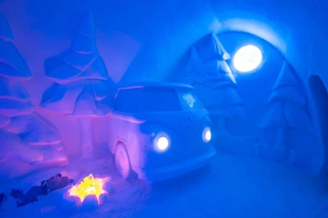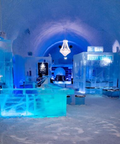 Забавно, что ресторан отеля не сделан из льда, вероятно, потому, что никто еще не придумал, как сделать работающую ледяную печь, и потому, что людям больше нравится, когда их еда подается горячей. Но есть и полностью укомплектованный «Айсбар», где все напитки подаются в ледяных стаканах. К счастью, у него пол из снега, а не льда, чтобы избежать скользких нежелательных встреч с другими гостями.
