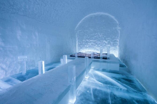Было неизбежно, что в этот список попадет какое-то арктическое жилье. И, несмотря на феноменальную красоту норвежского курорта Какслауттанен Иглу, в конечном итоге почетное место должно достаться Швеции за то, что она основала первый в мире ледяной отель в 1989 году. В отличие от полярных ледяных шапок, Icehotel омолаживается каждый год, и номера приобретают совершенно новую форму. Гостям предлагается выбор между холодными и теплыми апартаментами, в зависимости от того, насколько они хотят охладиться. Каждый год каждый номер-люкс умело и искусно реставрируется, и обновляется лучшими мировыми художниками.